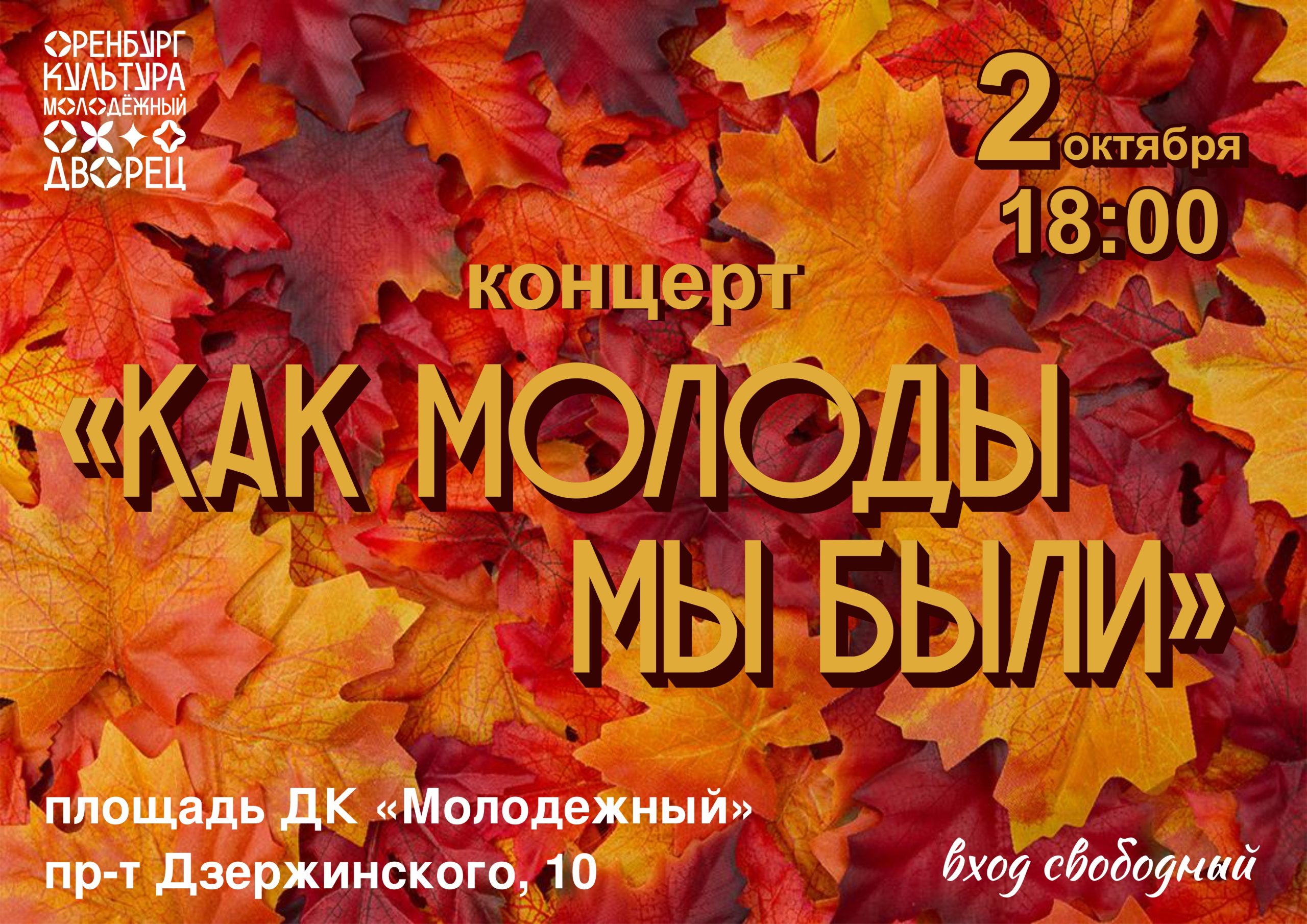 Оренбуржцев приглашают на концерт «Как молоды мы были». Теплый, душевный концерт, посвященный Дню пожилого человека, состоится 2 октября на площади у Дворца культуры «Молодежный» (пр-т Дзержинского,10) В концертной программе прозвучат […]