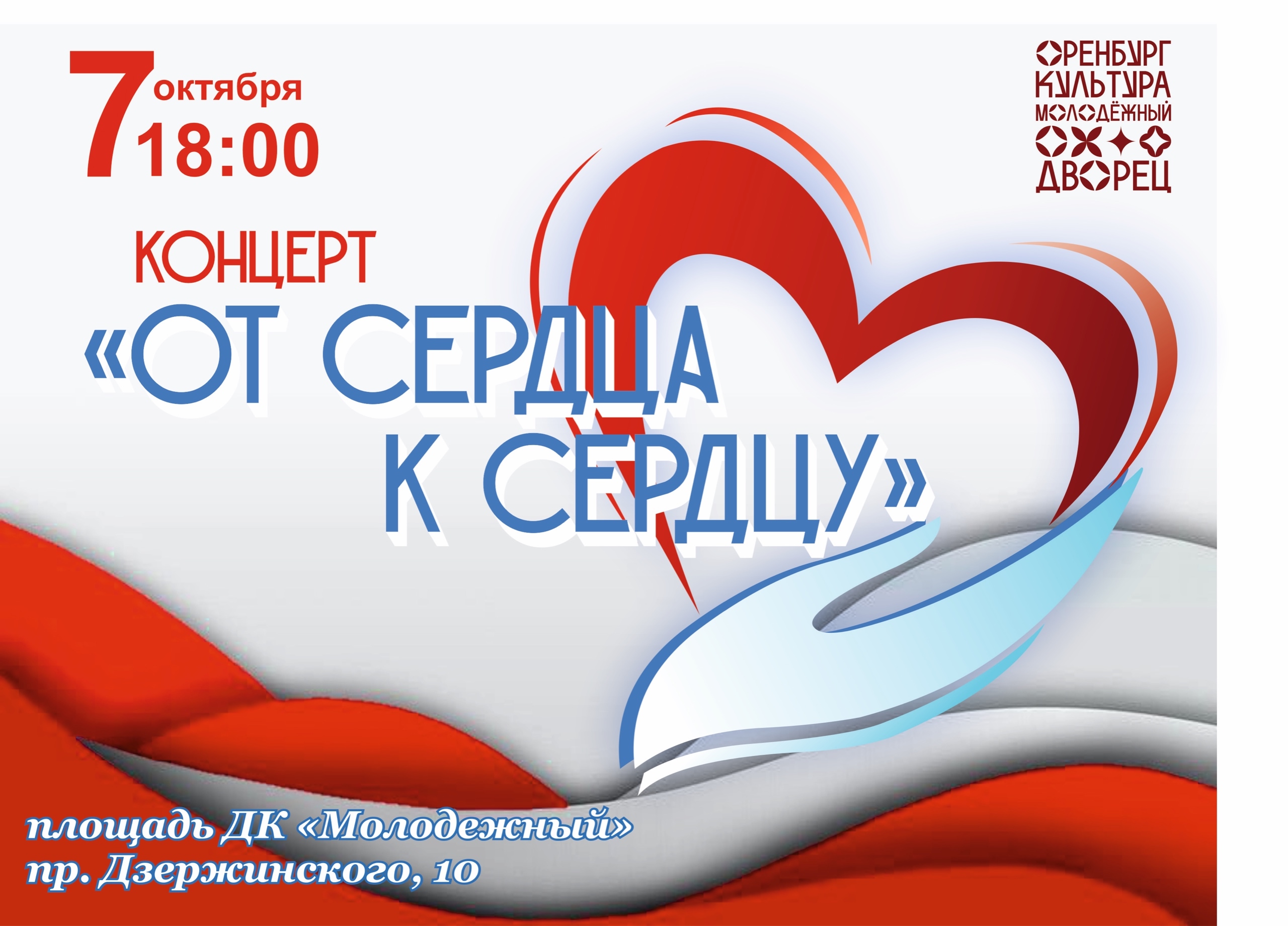7 октября в 18:00 на площади ДК «Молодежный» состоится концерт «От сердца к сердцу» с участием творческих коллективов и исполнителей ДК «Молодежный»! Ждем вас, дорогие друзья!