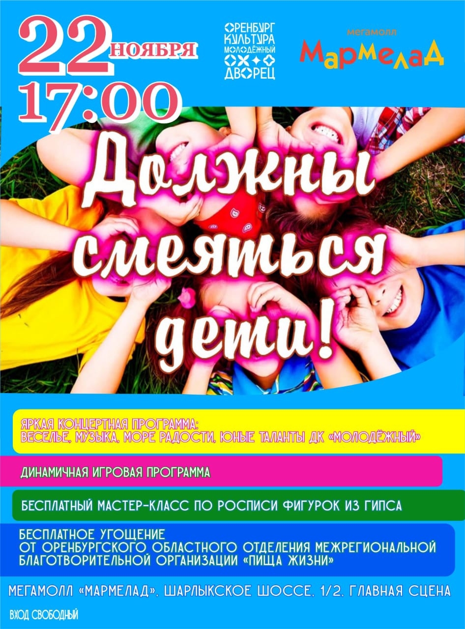 Мармелад Шарлыкское шоссе, 1/2, ОренбургДорогие друзья! Приглашаем 22 ноября в 17:00 в мегамолл «Мармелад» вас и ваших детей на незабываемое событие, которое подарит море радости и творчества! Что вас ждёт на празднике: Концертная программа […]